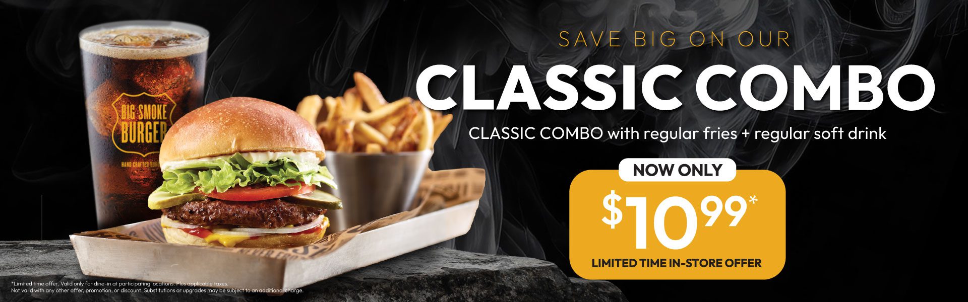 Our burgers are made with 100% Canadian beef—fresh, locally sourced, and perfectly grilled for unbeatable flavor in every bite. They’re topped with gourmet ingredients sourced from top-quality producers, using local options whenever possible. Our menu also features fresh-cut fries prepared daily and cooked in trans fat-free canola oil, hand-spun milkshakes, house-made sauces, traditional poutine, and a selection of unique beverages.